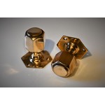 Polished rose brass hexagonal door knobs.