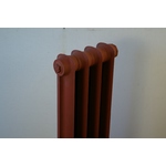 Cast iron radiator with a rounded top, painted with two coats of Red Oxide primer.