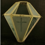 Hexagonal porch lantern from Hingham Church, with etched glass panels.